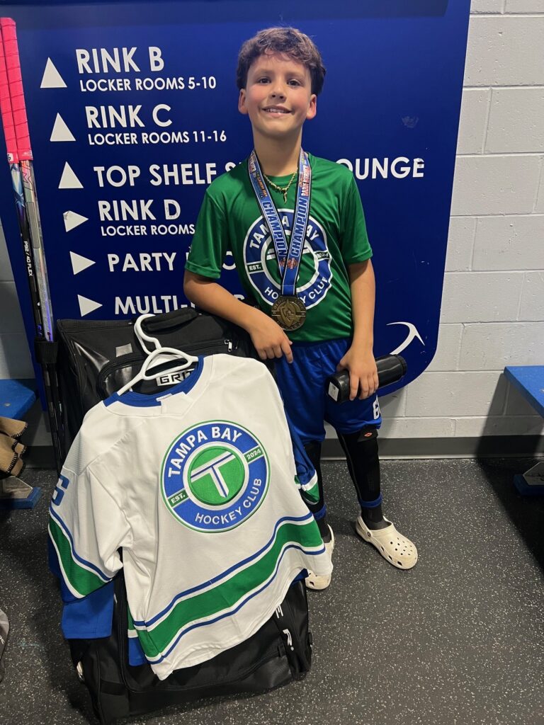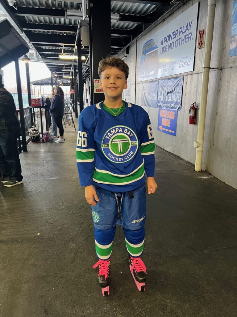 The Hackings live in Palm Harbor, not far from the Tampa Bay Skating Academy in Oldsmar, where Nick practices with his Tampa Bay Hockey Club team. Nick has been playing hockey for six years, making the move from youth football after an ice-skating outing with his friends.