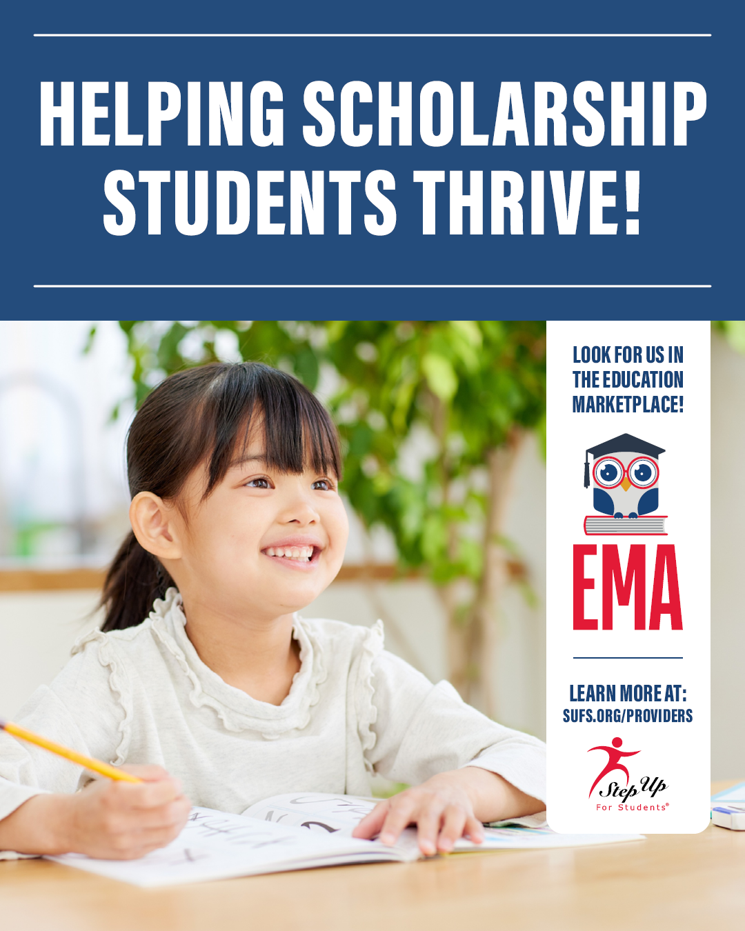 - Ale nan [antize non lekòl ou a isit la] avèk èd yon bousdetid lekòl prive atravè @StepUp4Students. Aprann plis nan SUFS.org.