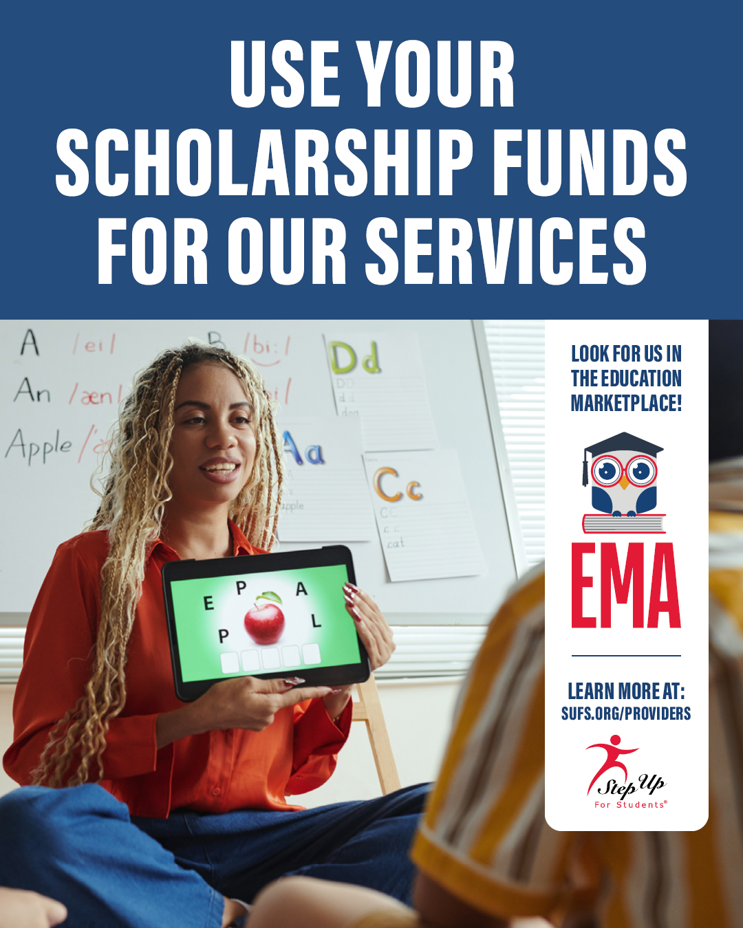 Step Up For Students travay kole kole ak founisè sèvis edikasyonèl ak vandè pwodwi edikasyonèl pou bay elèv PreK3-12 nan Florid opòtinite edikasyonèl.